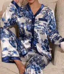 Price range: 29,92 € through 33,22 €Women’s Satin Lace Trimmed Pajama Set Sexy Cozy Two Piece Pajama Set Home Wear For Fall/Winter