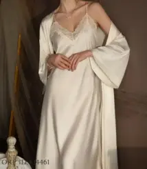 Hot-selling solid-color polyester nightgown lace see-through robe for women 2pcs set