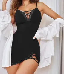 Sexy mesh nightgown with lace and lace, tempting perspective sleepwear, women’s outerwear, home clothes