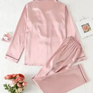 Women Autumn Winter Silk Pajamas Set Casual Soft Breathable and Relaxed Fit Long Shirt Tops and Long Pants Sleepwear