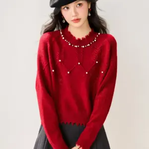 2025 Winter Collection Features A New Red Base Sweater For The Zodiac Year With Beautiful Beaded And Elegant Unique Women’S Top
