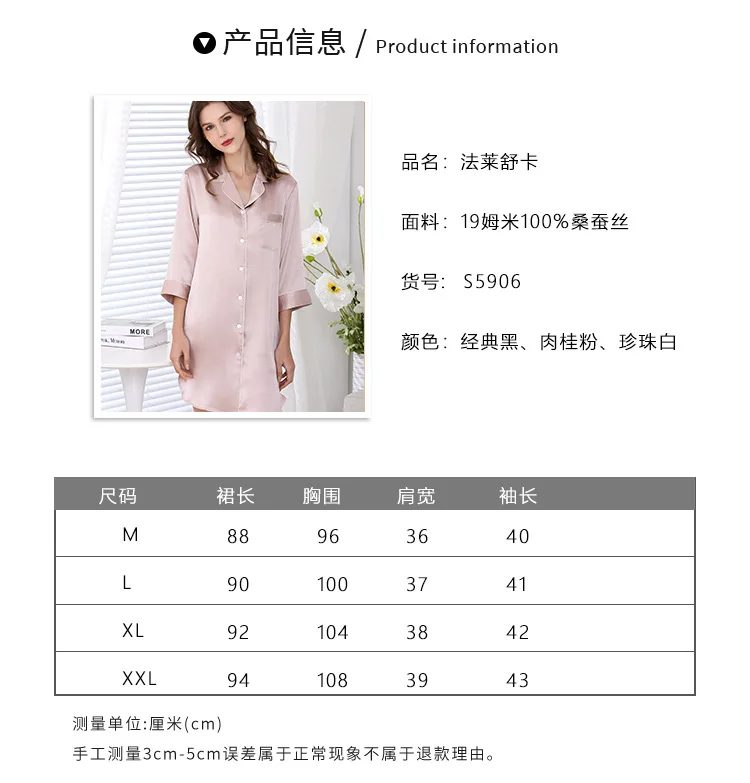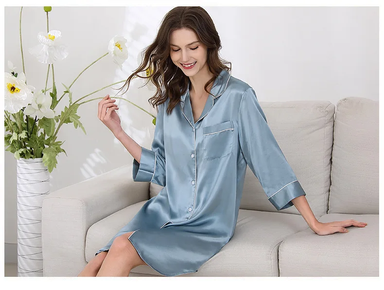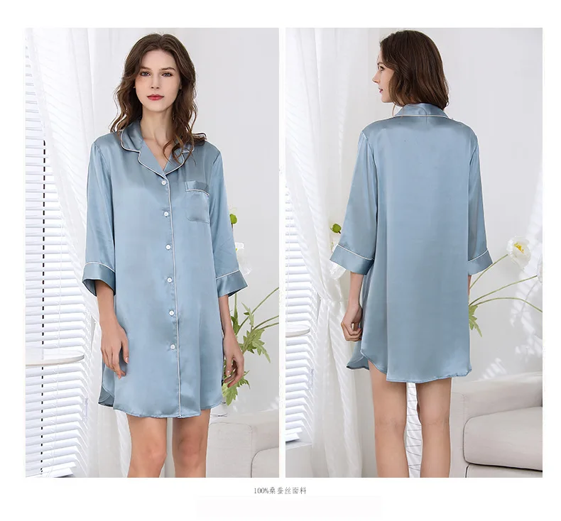 16 momme 100% silk night shirts women Elegant nightdress natural silk sleep dress pajamas for women S5906