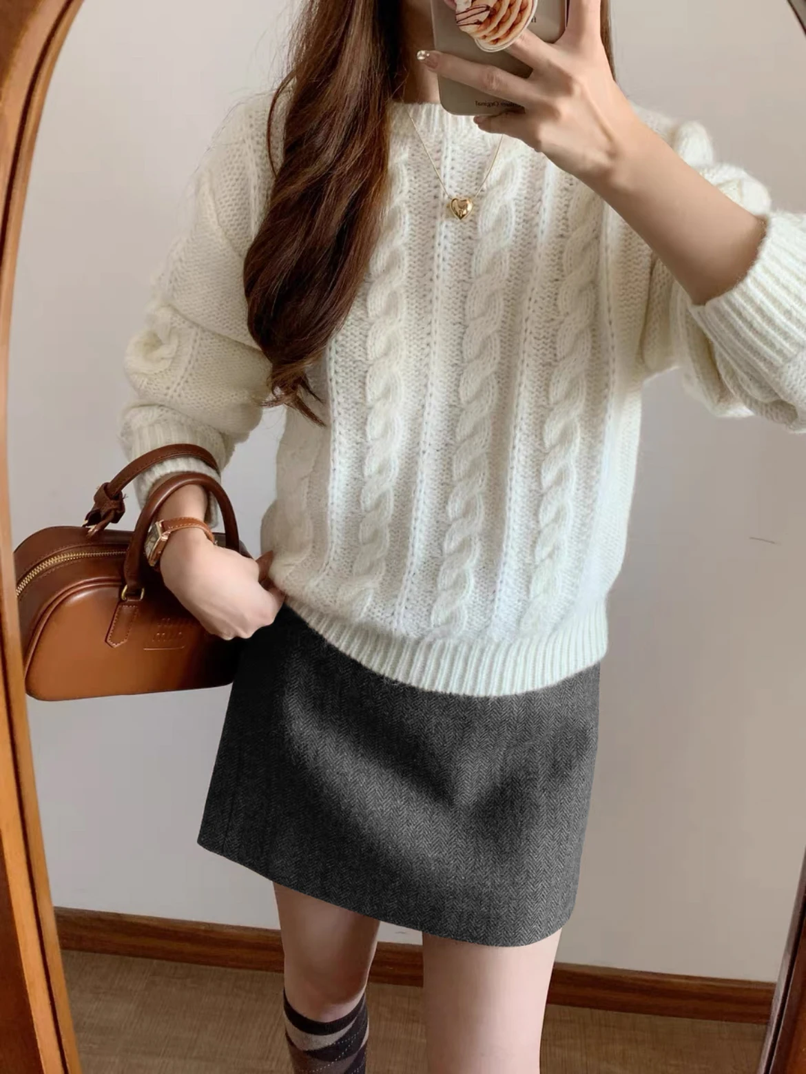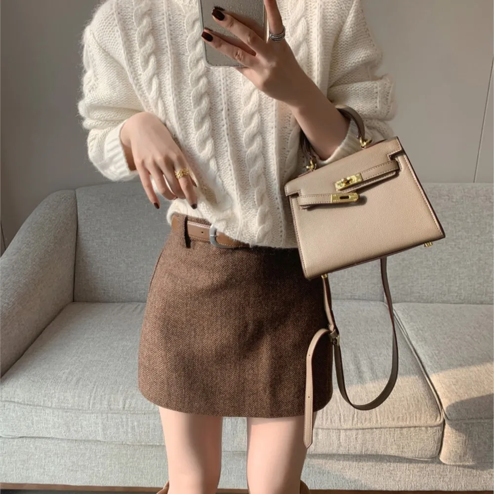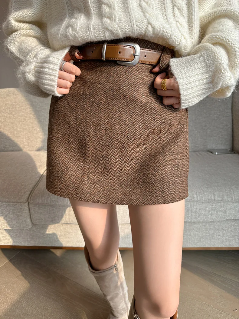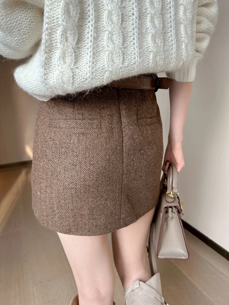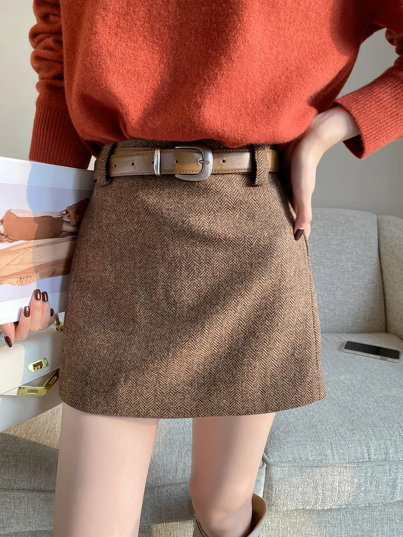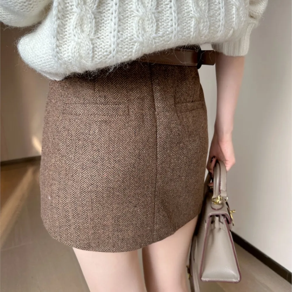 Seoulish Autumn Winter New Vintage Woolen Women’s Short Skirts with Belted High Waist Korean A-line Sexy Mini Skirts Female