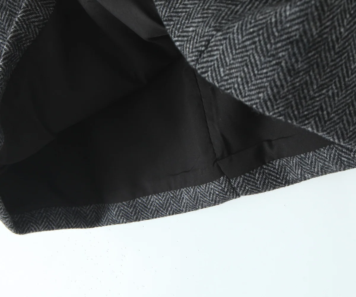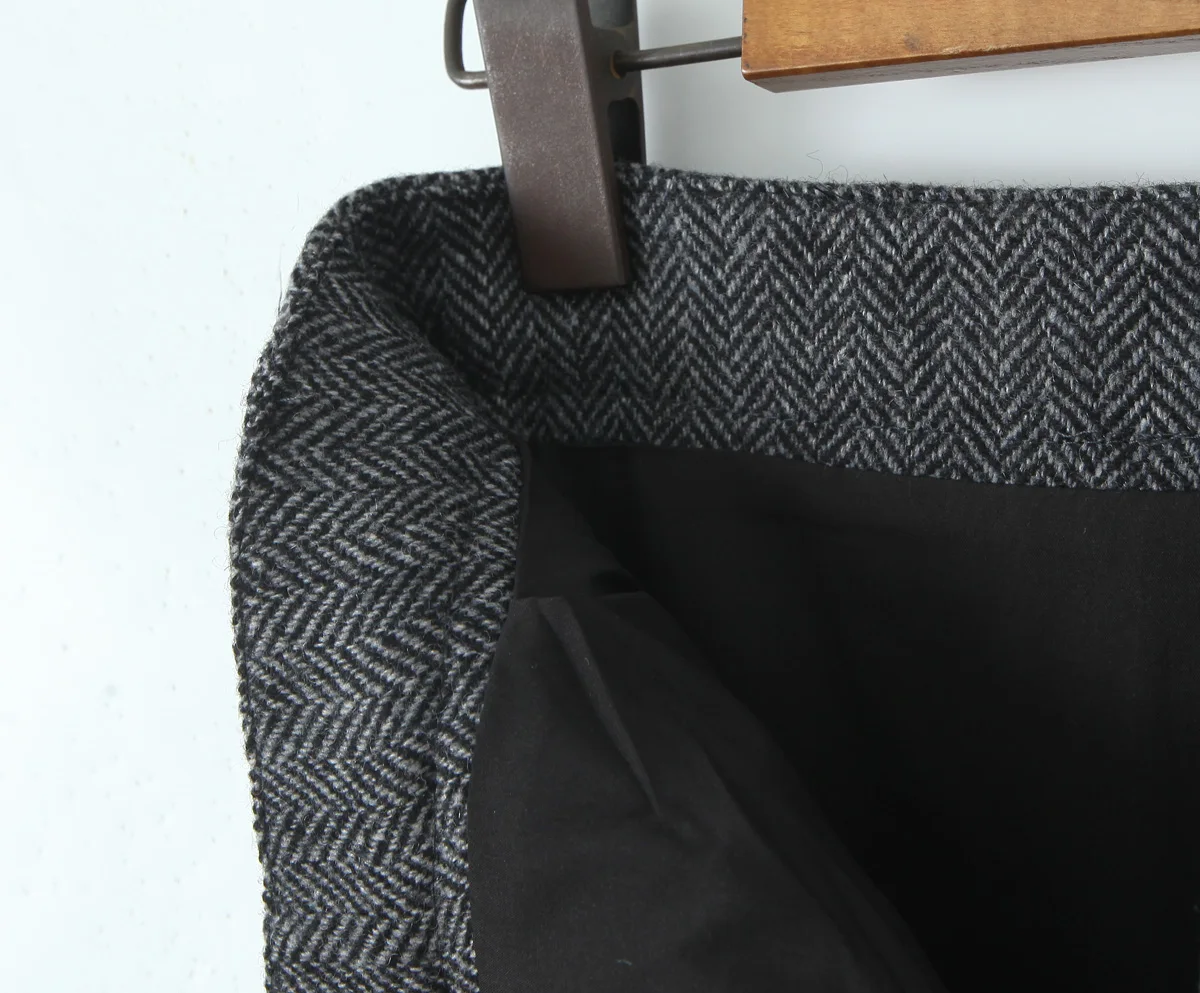 Vintage Winter Pleated Mini Skirt Women Streetwear High Waist Woolen Cute Skater Skirts With Shorts Belt Grey Black Skirt Woman