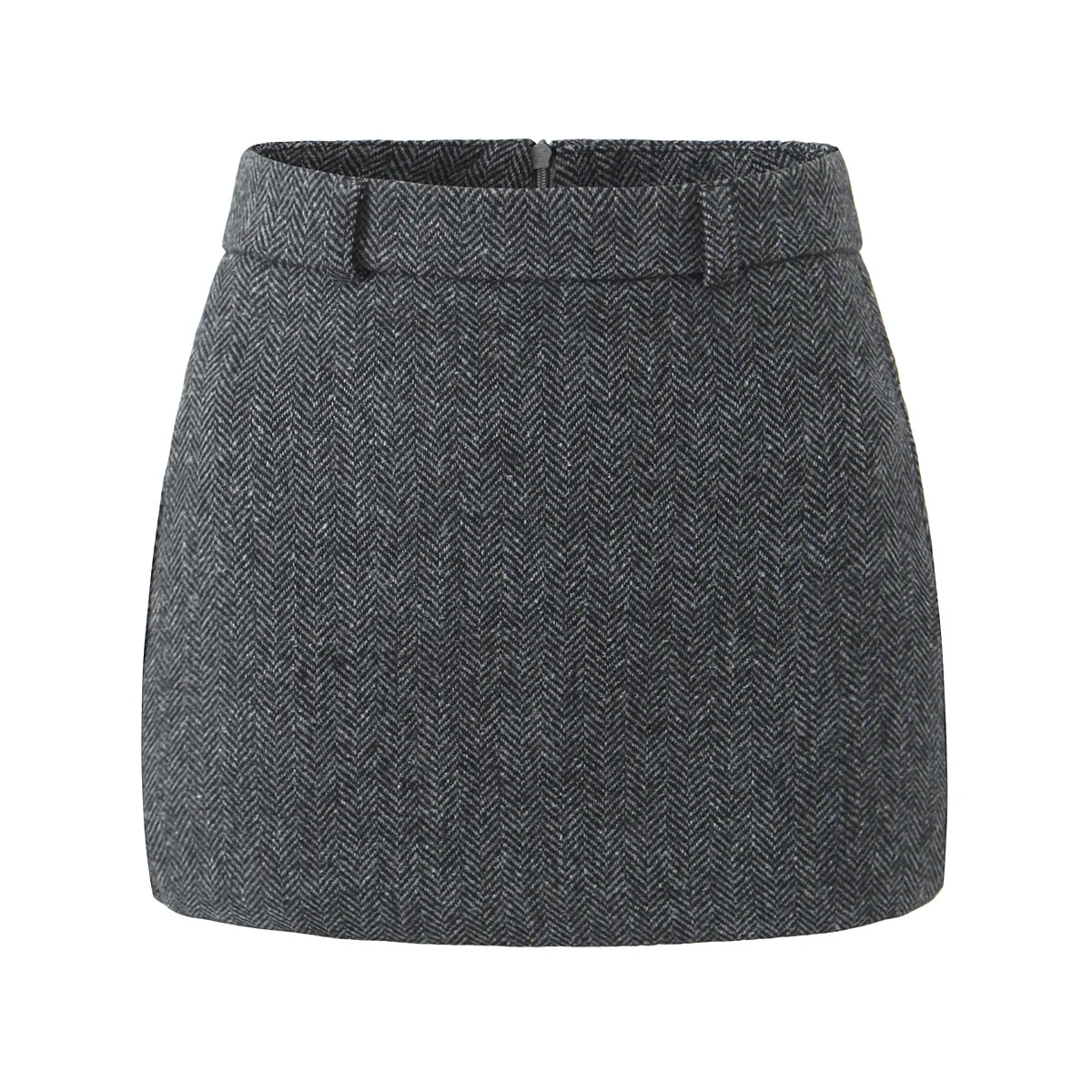 2024 Autumn Winter Soft Woolen High Waist Mini Skirt Women A-line Package Hips Short Skater Party Femme Camel Gray