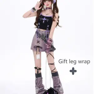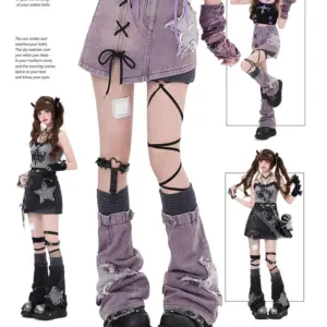 Women’s Purple Y2k Lace-up Denim Skirt Elegant Harajuku Mini Jeans Skirts Streetwear 90s Aesthetic Vintage Skirt 2000s Clothes