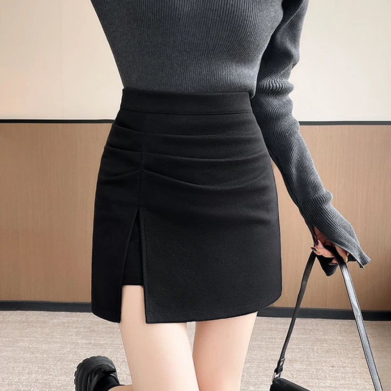 2025 Autumn Side Split Woolen Mini Skirts Women High Waist Slimming Short Skirt Korean Streetwear Sexy Spicy A-Line Skirts Mujer