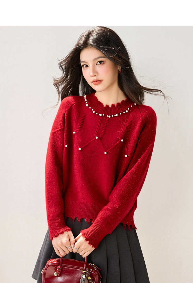 2025 Winter Collection Features A New Red Base Sweater For The Zodiac Year With Beautiful Beaded And Elegant Unique Women’S Top