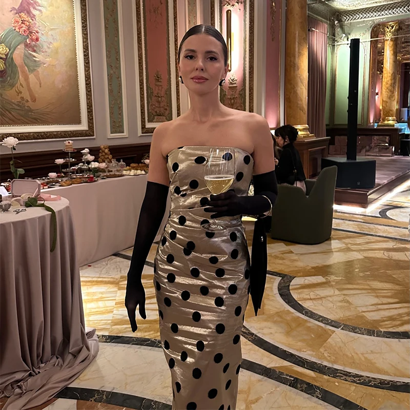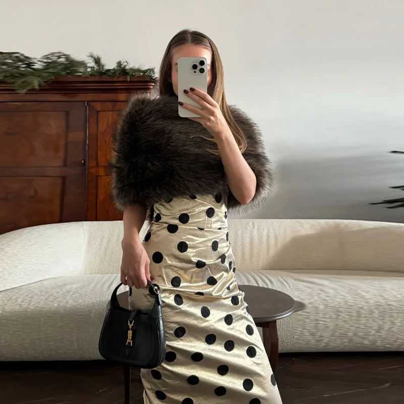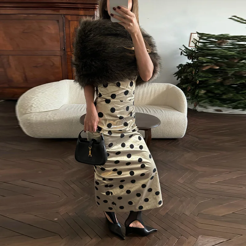 Elegant Women’s Dress Strapless Sleeveless Slim Hip Package Print Polka Dot Female Dresses 2025 Autumn Spring Fashion Lady Robe