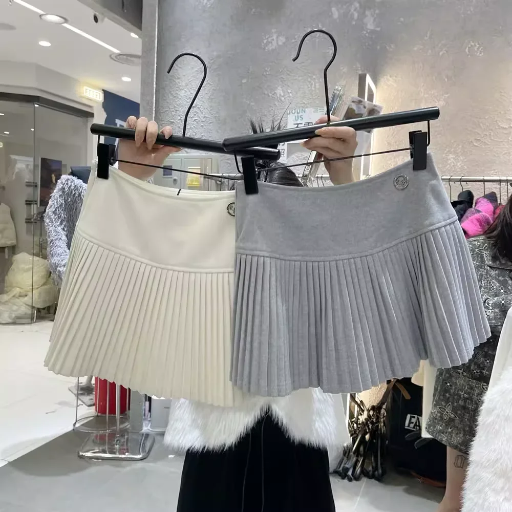 Knitted High Vintage All-match Skirts for Women Short 2022 New Korean Style Pleated Autumn Chic Women’s Clothing A-line Skirt