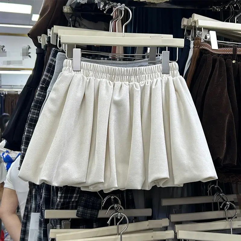 Imitation Suede Flower Bud Skirt Women’s New Autumn Winter Loose Versatile A-line Puffy Short Skirt