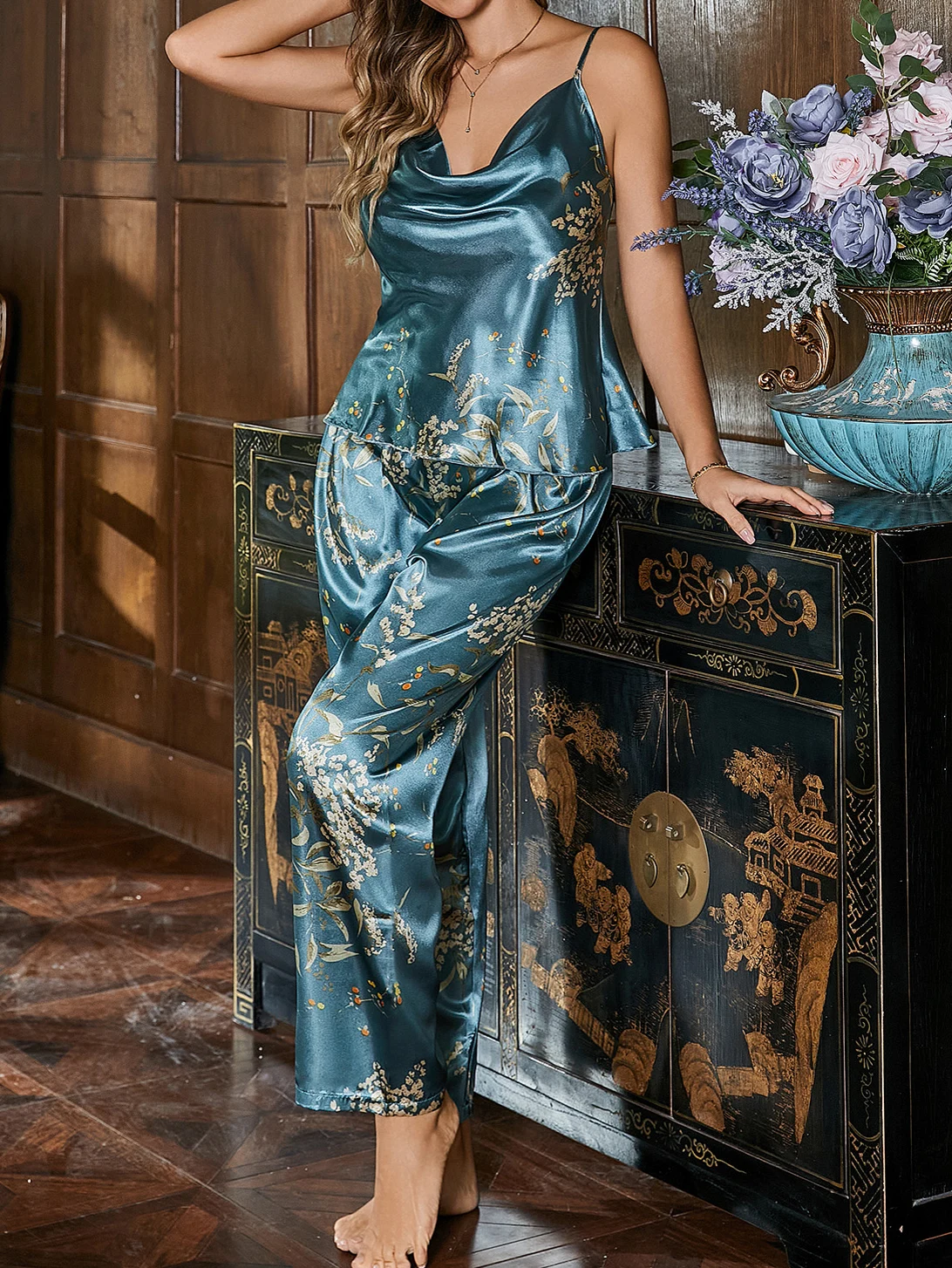 Ladies Floral Print Camisole with Pants Exquisite Print Design Showcasing Romantic Charm Perfect for Various Occasions