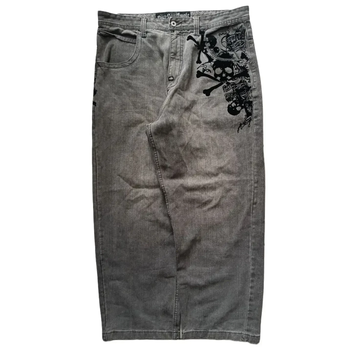 Retro New Southpole Jeans Skull Watermark Loose Jeans Men’s and Women’s Y2K Harajuku Gothic Hip Hop Skateboard Pants Street Wear