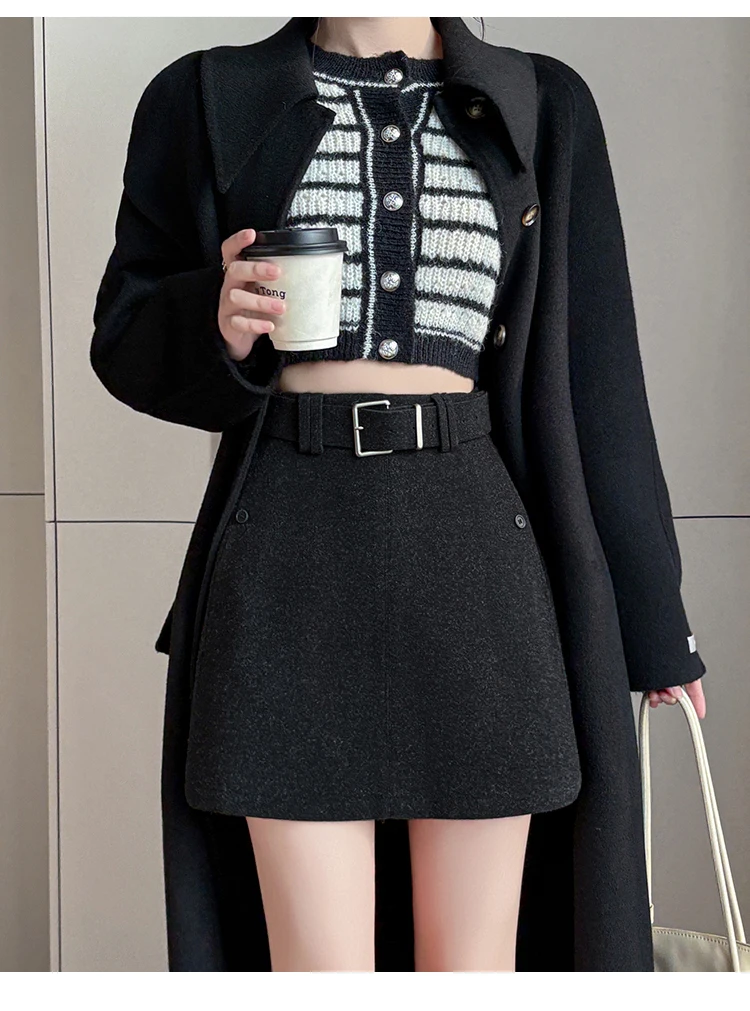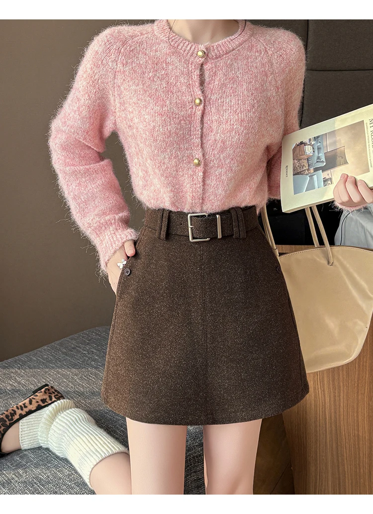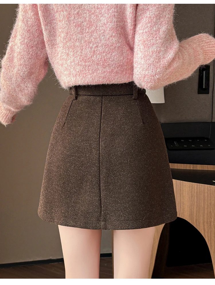 Seoulish Autumn Winter New Vintage Woolen Women’s Short Skirts with Belted High Waist Korean A-line Sexy Mini Skirts Female