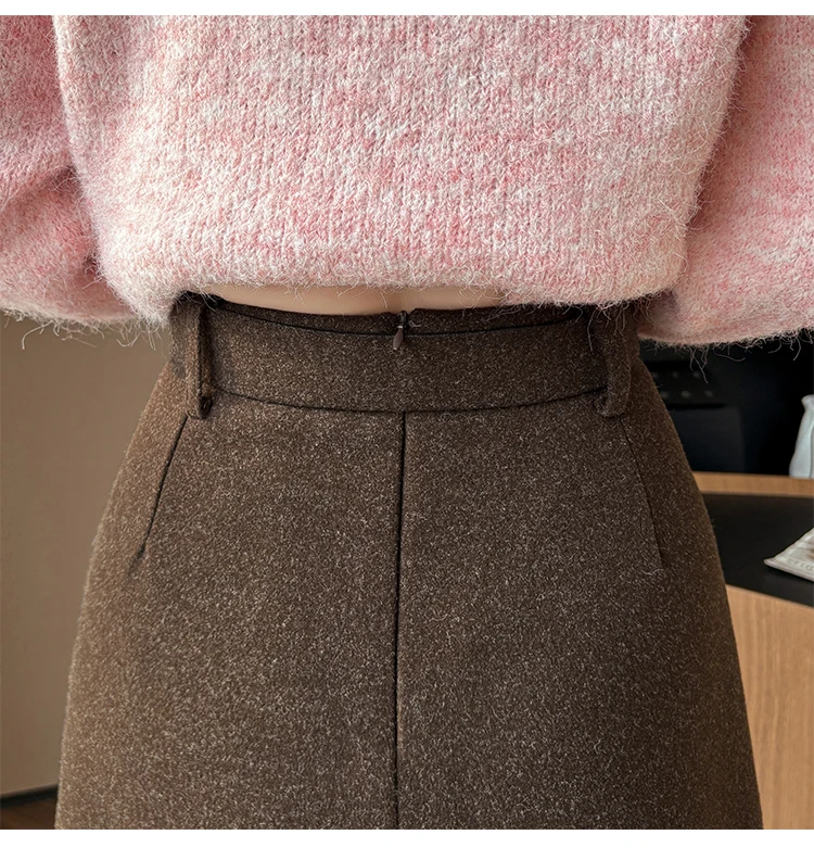 2024 Autumn Winter Soft Woolen High Waist Mini Skirt Women A-line Package Hips Short Skater Party Femme Camel Gray