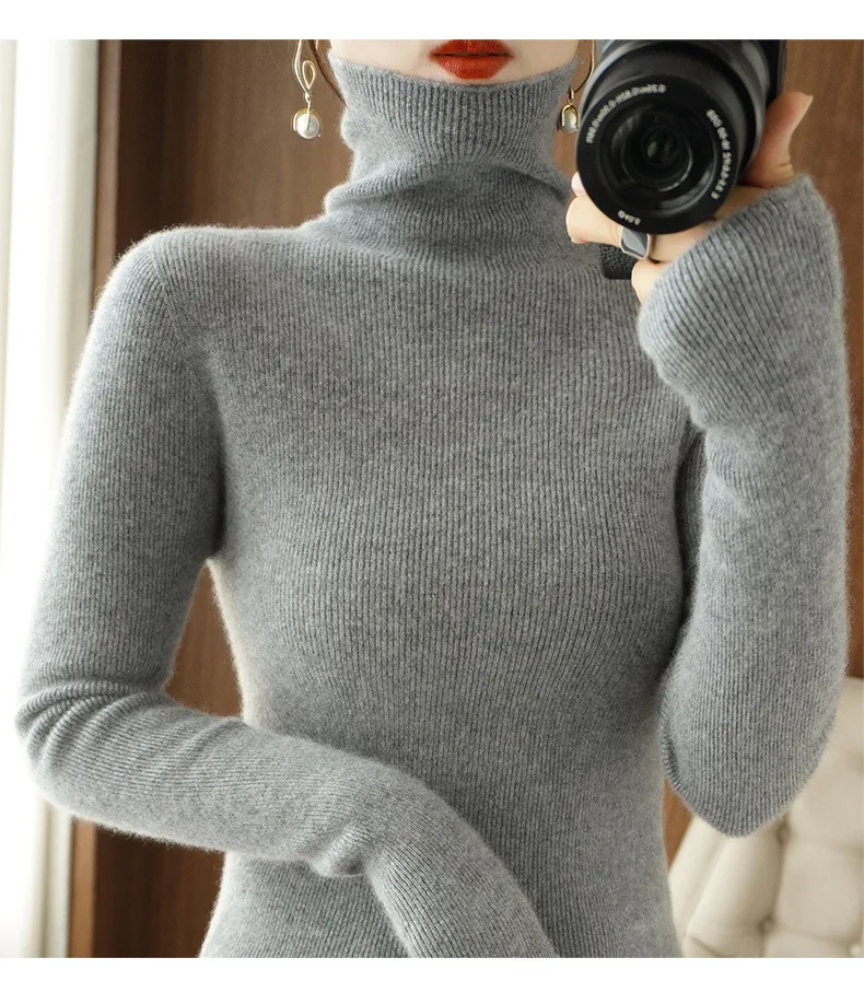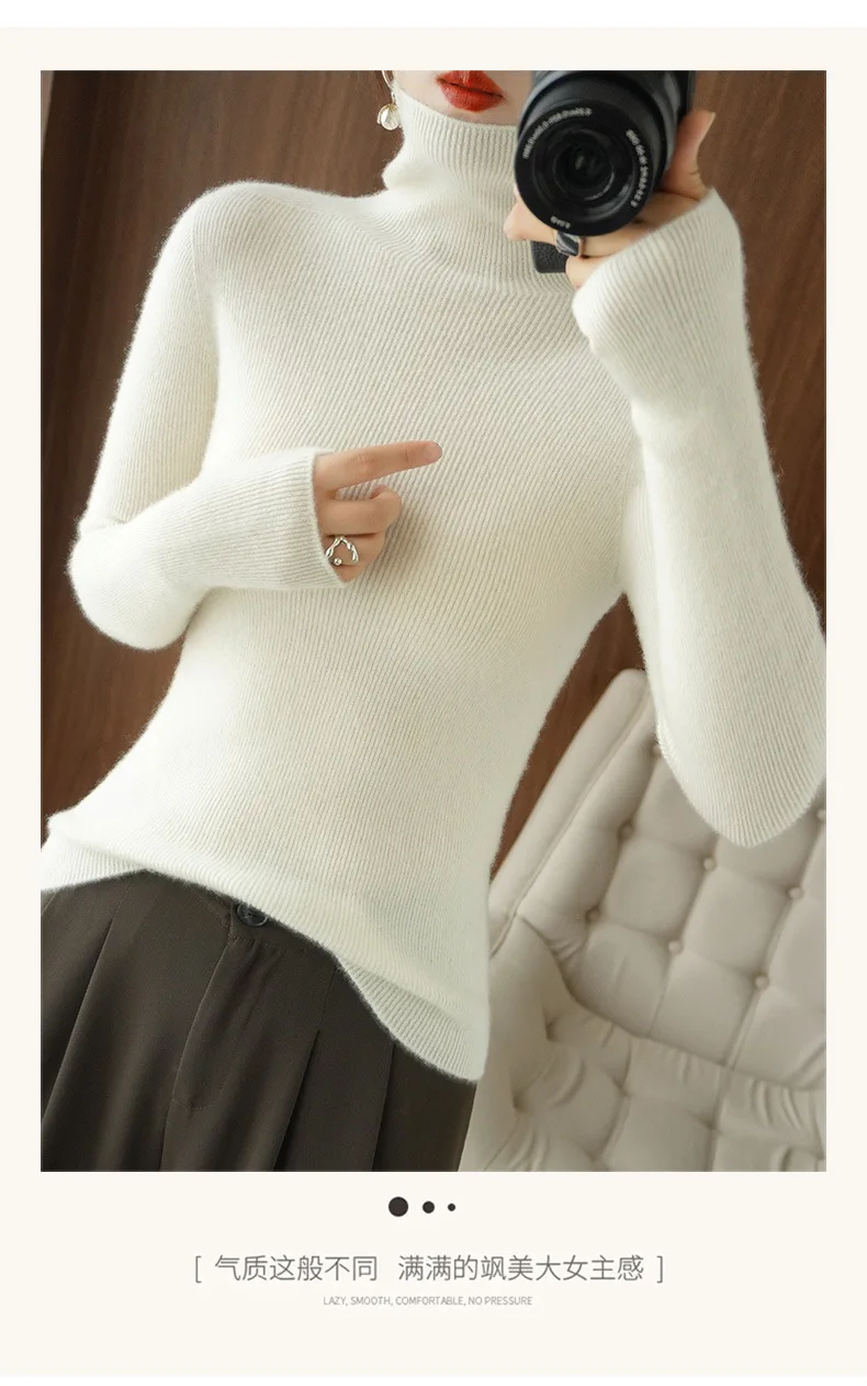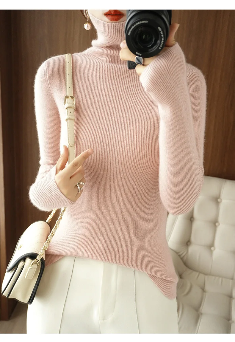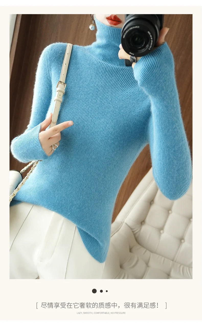 Women Sweater Turtleneck Slim Pullovers Autumn Winter Warm Bottoming Shirts Jumpers Basic High Strecth Fashion Korean Knitwear